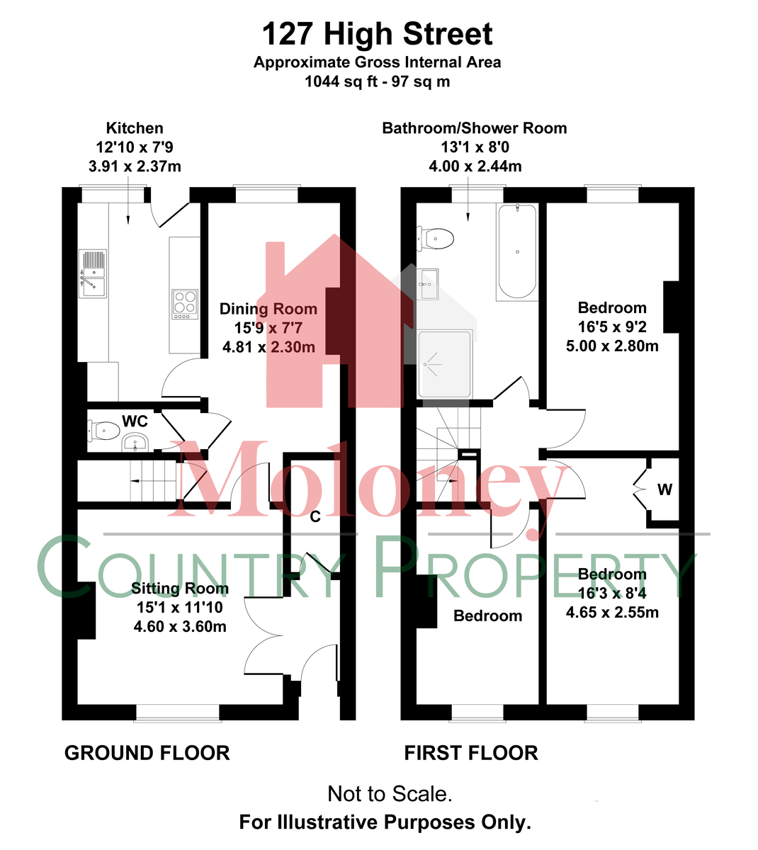 Floor Area: 97 m2 (1,044 ft2) Approx.