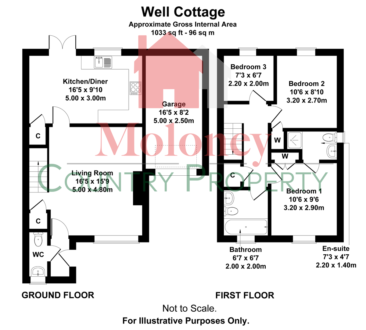 Floor Area: 96 m2 ( 1,033 ft2) Approx.