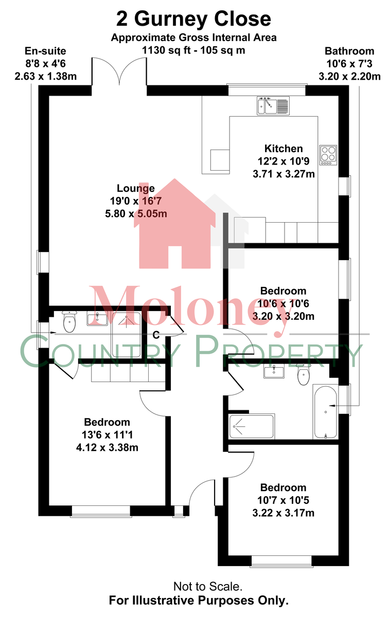 Floor Area: 105 m2 ( 1,130 ft2) Approx.