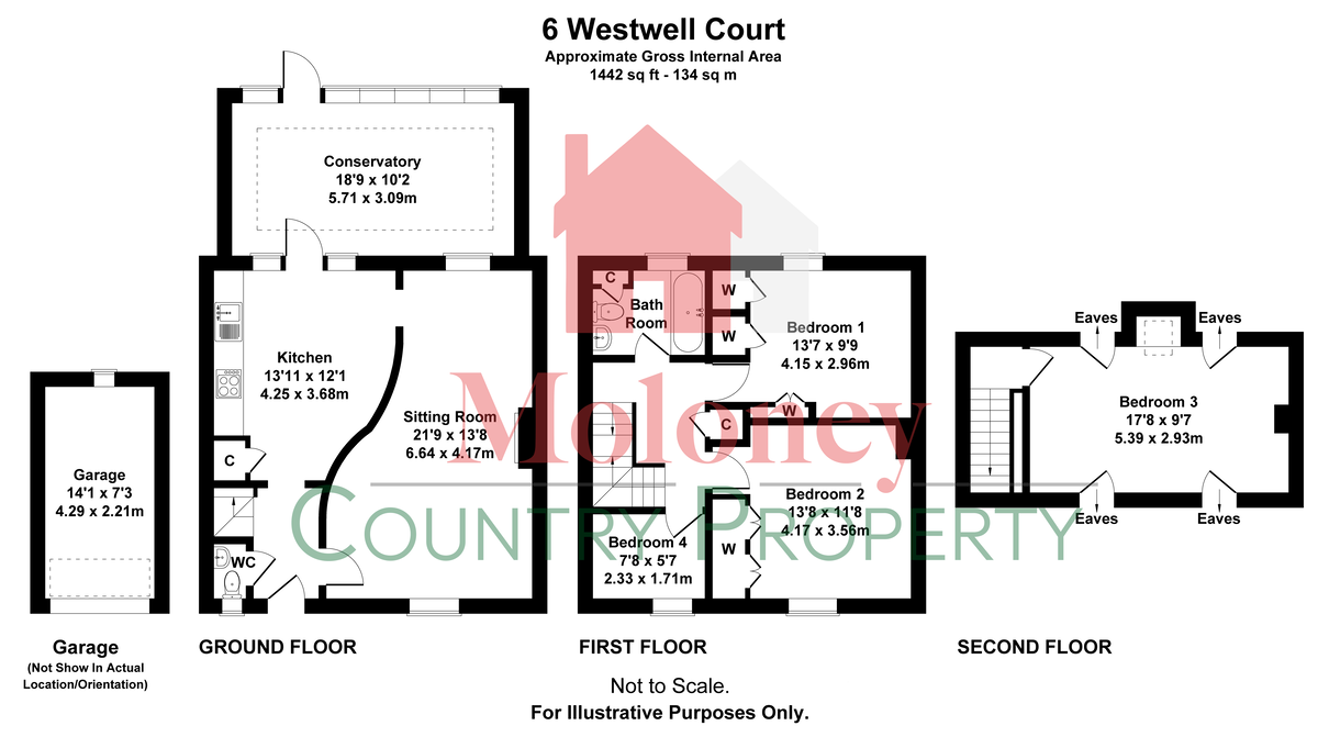Floor Area: 134 m2 (1,442 ft2) Approx.